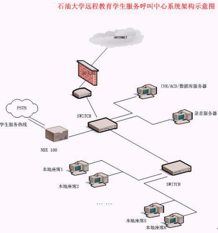 石油大學遠程教育學生服務呼叫中心系統(tǒng)架構(gòu)示意圖
