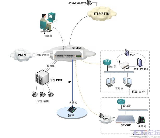隨著經(jīng)濟(jì)全球化趨勢的興起,企業(yè)國際化和地理分散特征越來越明顯。即使是中小規(guī)模的企業(yè),也經(jīng)常設(shè)立跨地區(qū)或跨國的辦事機(jī)構(gòu)。由此企業(yè)內(nèi)部電話通信成為一個(gè)至關(guān)重要的手段。但對于一個(gè)成本敏感性的群體,結(jié)合日益成熟的VoIP技術(shù),搭建靈活、穩(wěn)定、經(jīng)濟(jì)的語音網(wǎng)絡(luò)交互平臺,勢必成為中小企業(yè)的首選。Zed-3(捷思銳科技)的SE系列 IP PBX即是專為中小企業(yè)量身設(shè)計(jì)的,其中典型產(chǎn)品為SE150。