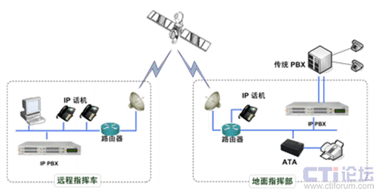 在有關(guān)部隊(duì)的應(yīng)用案例中,有兩方面比較常見,應(yīng)用也比較廣泛。首先是借助衛(wèi)星的遠(yuǎn)程指揮通訊,我們?yōu)榈孛鏅C(jī)關(guān)與遠(yuǎn)程指揮車之間架設(shè)起溝通的橋梁,除了電話、傳真等基本業(yè)務(wù),還通過IP-PBX系統(tǒng)提供了多方會議、語音留言、熱線電話等擴(kuò)展業(yè)務(wù),在即使是雙星四跳的高延時(shí)環(huán)境下建立起穩(wěn)定的語音通信,保障了部隊(duì)指揮的有效下達(dá)。