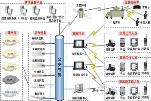 一方面,由于公安系統(tǒng)承擔著打擊違法分子、維護社會穩(wěn)定的責任。因此就要求公安指揮人員能夠在出現(xiàn)緊急狀況時,能夠在第一時間安排公安人員前往處理,并且能夠在處理的過程中實時的指揮中心進行溝通,同時為了保證公安系統(tǒng)工作的高效性,要求能夠?qū)崿F(xiàn)市指揮中心直接和分布在全市、縣區(qū)分局、派出所、巡邏人員進行直接的通信,由指揮中心根據(jù)事態(tài)的發(fā)展,統(tǒng)一調(diào)度各方面的資源來配合處理,爭取在最短的時間解決突發(fā)事件,防止事態(tài)的發(fā)展。