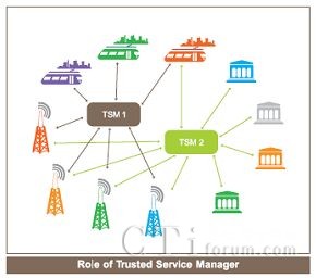可信服務(wù)管理 (TSM)為復(fù)雜的、有眾多參與者的NFC生態(tài)系統(tǒng)帶來的穩(wěn)定性及可預(yù)見性。其核心作用是分配和管理各個(gè)服務(wù)提供商的應(yīng)用。它是移動(dòng)運(yùn)營商、銀行和公交公司的一個(gè)共同的聯(lián)絡(luò)點(diǎn)。對(duì)移動(dòng)NFC應(yīng)用進(jìn)行安全下載和生命周期管?尚欧⻊(wù)管理必須贏得參與各方的信任才能完成這一任務(wù)。