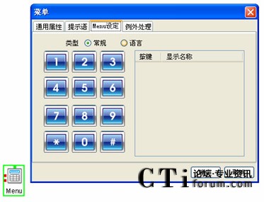 2、菜單(Menu)組件:是IVR的語音菜單組件,不同的語音菜單對(duì)應(yīng)支持不同的業(yè)務(wù)功能。