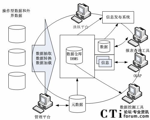 首先,數(shù)據倉庫是一種有效的管理技術,將分布在網絡中不同站點的商業(yè)數(shù)據集成到一起,為決策者提供各種類型的、有效的數(shù)據分析,起到決策支持作用。它是一個壞境,而不是一件產品,它提供用戶用于決策支持的當前和歷史數(shù)據,這些數(shù)據在傳統(tǒng)的操作型數(shù)據庫中很難或不能得到[22]