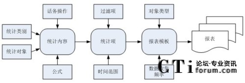 模板的劃分用來簡化了報表的復雜性。根據(jù)這些關(guān)鍵性模板,以公正的最重要的呼叫中心的統(tǒng)計資料過濾關(guān)鍵性數(shù)據(jù),然后以各種各樣的可視化顯示技術(shù)來展示報表數(shù)據(jù)。