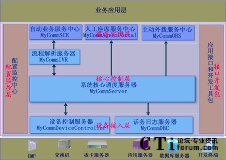 系統(tǒng)平臺層:MyComm是一個基于硬件支撐平臺之上的CTI應(yīng)用開發(fā)中間件。對下屏蔽了復雜的硬件通控制;對上,簡化和提高業(yè)務(wù)應(yīng)用的實際、開發(fā)和應(yīng)用