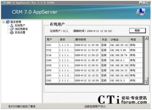 從下圖的列表可以看到實時的用戶連接數(shù),每個客戶端的CPU序列號,硬盤序列,和唯一的登陸序列。并且可以選擇指定的用戶,對用戶做強(qiáng)迫下線,發(fā)送消息,截取用戶屏幕等操作。