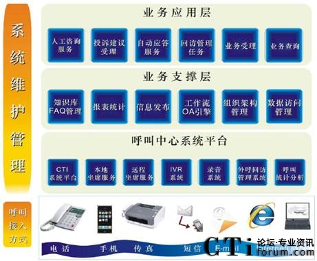 系統(tǒng)通過人工坐席、自助語音服務(wù)、電子郵件、傳真、即時(shí)聊天工具等方式,受理客戶所申辦的快遞業(yè)務(wù),生成派單并轉(zhuǎn)發(fā)給相應(yīng)部門進(jìn)行處理。待處理結(jié)果通過網(wǎng)絡(luò)返回到企業(yè)呼叫中心后,客服人員以電話、傳真、短信息、電子郵件等方式回復(fù)客戶?蛻粢部呻S時(shí)通過本系統(tǒng)了解所申辦業(yè)務(wù)現(xiàn)處于哪一環(huán)節(jié)及哪一部門所處理。系統(tǒng)的來電彈跳功能可以使客服人員第一時(shí)間獲知來電者的身份背景資料,迅速了解其歷史消費(fèi)信息、詳細(xì)地址等等資料。