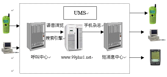 “99+1”統(tǒng)一消息網(wǎng)(以下簡稱“99+1”)是基于統(tǒng)一消息服務(wù)(UMS)平臺,應(yīng)用呼叫中心服務(wù)方式,針對移動(dòng)用戶,以“99+1”網(wǎng)站為中心服務(wù)渠道,融合了先進(jìn)的語音合成和語音識別技術(shù),充分實(shí)現(xiàn)了話音、數(shù)據(jù)、短消息等全方位服務(wù)方式的綜合信息服務(wù)網(wǎng)絡(luò)。