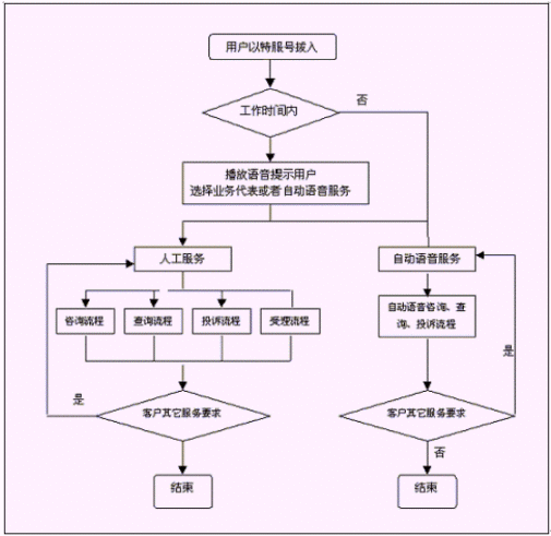 客戶也可以選擇自動語音服務(wù)方式,根據(jù)系統(tǒng)的語音提示輸入按鍵,選擇類別,將自己所需要的服務(wù)要求以及自己的聯(lián)系方式信息以留言錄音的方式保存在系統(tǒng)中。系統(tǒng)同時還支持自動傳真方式,客戶可以通過傳真機進入本系統(tǒng),通過按鍵選擇傳真方式,將所需要的服務(wù)要求等的文本內(nèi)容傳真給系統(tǒng),系統(tǒng)自動接受并存入數(shù)據(jù)庫。