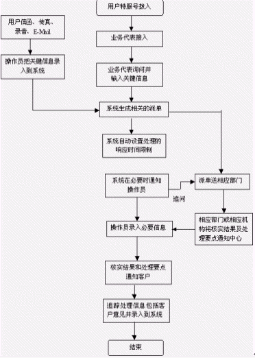 本系統(tǒng)能夠?qū)?shù)據(jù)庫中每天收到的各種類型的信息進行整理后供查詢,或?qū)⑿畔⒌慕y(tǒng)計報表和其他的各種信息匯總輸出,上報給相關(guān)部門(訪銷部或物流中心)或領(lǐng)導(dǎo)。各相關(guān)部門調(diào)查處理結(jié)果和答復(fù)意見出來后,再由座席話務(wù)人員通知到本人。也可由系統(tǒng)自動撥通聯(lián)系電話,由系統(tǒng)通過傳真或電腦語音自動播報調(diào)查處理結(jié)果和答復(fù)意見來完成回饋。