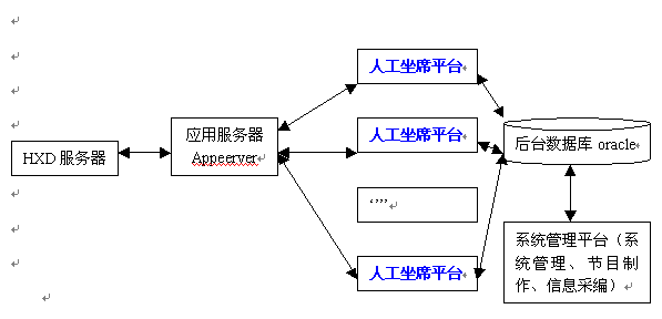 1) 數(shù)據(jù)庫系統(tǒng): 存放各類待查信息數(shù)據(jù)、話務(wù)統(tǒng)計數(shù)據(jù)、話務(wù)員操作明細數(shù)據(jù)等;