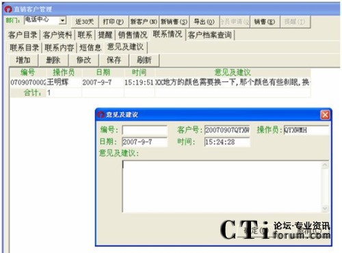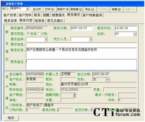 電話:既可以輸入固定電話,也可以輸入手機(jī)號來查找客戶資料。
