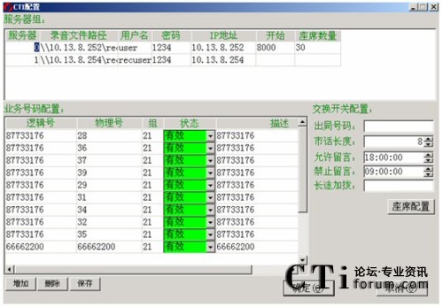 點擊新增來設(shè)置集團(tuán)電話,并點擊保存來保存集團(tuán)電話號,集團(tuán)電話的呼入不算進(jìn)線。要修改某集團(tuán)電話號,選定電話那一欄的對應(yīng)電話號,直接修改就可以了。