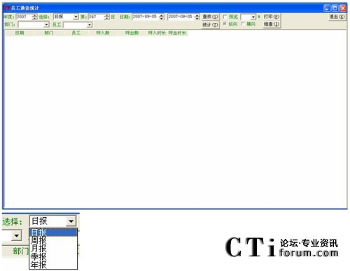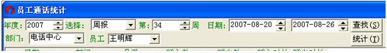 默認(rèn)的情況下是日報,下面以統(tǒng)計2007年度第34周,電話中心的員工王明輝為例: