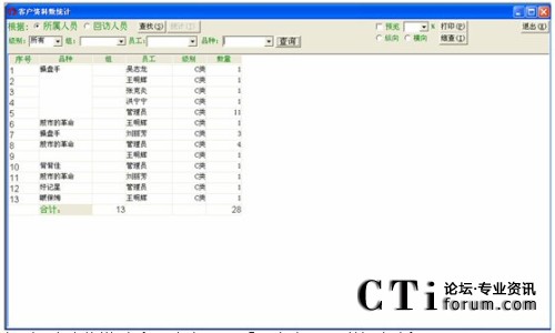 在進(jìn)行客戶檔案查詢的過程中,要特別注意前面帶復(fù)選框(即小正方形框)的這些查詢條件,比如:登記時間、區(qū)域、品種、員工,在進(jìn)行這些條件查詢的時候,一定點擊一下復(fù)選框(即打上對勾),才能進(jìn)行有效地查詢,否則該查詢條件無效。