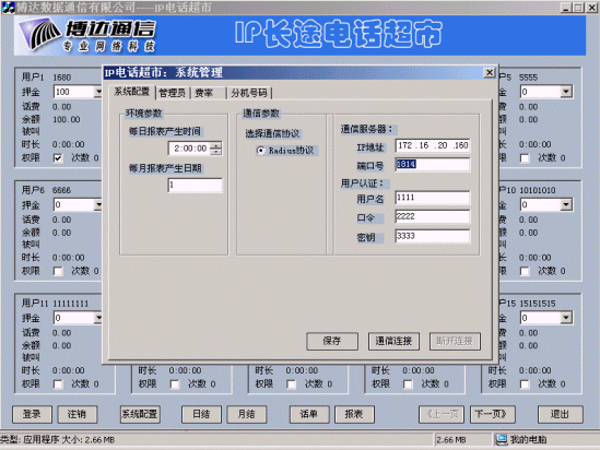 專用于VoIP技術(shù)的企業(yè)級(jí)語(yǔ)音計(jì)費(fèi)關(guān)鍵軟件(最大可管理10000個(gè)語(yǔ)音終端、網(wǎng)關(guān),內(nèi)置博達(dá)Radius Server)