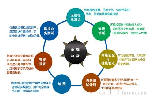 該系統(tǒng)能夠向用戶提供豐富的802.11 a/b/g/n無線參數(shù),包括信號強(qiáng)度覆蓋參數(shù),同頻干擾及鄰頻干擾參數(shù),管理幀、控制幀、數(shù)據(jù)幀及各種無線幀傳輸速率的統(tǒng)計(jì)參數(shù)等;系統(tǒng)能基于以上各類統(tǒng)計(jì)參數(shù),并通過實(shí)時(shí)進(jìn)行各種數(shù)據(jù)業(yè)務(wù)測試,獲取網(wǎng)絡(luò)的數(shù)據(jù)業(yè)務(wù)參數(shù)指標(biāo),分析WLAN網(wǎng)絡(luò)質(zhì)量問題。