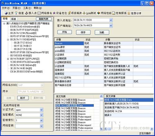連接診斷功能實(shí)時(shí)分析顯示接入點(diǎn)同客戶端之間連接步驟的完成狀況,為分析網(wǎng)絡(luò)接入問題提供支持。