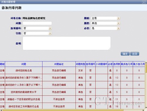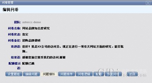 在后臺能夠對問卷進行添加或刪除,對問卷的設計、表現(xiàn)形式、問題類型等進行編輯修改。