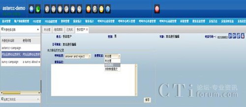 客戶資料獲取后,坐席將開始對該客戶進行問卷調查,下方便會自動彈出坐席需要陳述的該項目問卷信息(坐席可根據(jù)需要進行全屏或半屏操作),astercc問卷系統(tǒng)為您提供了雙重便捷式的服務。