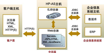 ----通過HP-AS開發(fā)的應(yīng)用都是典型的分布式應(yīng)用。設(shè)計分布式應(yīng)用的普遍方法是利用3層架構(gòu): 與客戶交互的客戶層(Client Layer);商務(wù)與表示層(Business