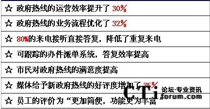 在我們的采訪中,深圳市政府認(rèn)為,建設(shè)法治政府、廉潔政府、效率政府、有限政府、陽光政府和責(zé)任政府,前提是政府必須完成轉(zhuǎn)型。政府行政體制改革的最終目標(biāo)是要達(dá)到行政權(quán)力規(guī)范,服務(wù)型的一個(gè)政府。因而,為市民提供專業(yè)權(quán)威和有效的政府熱線服務(wù)成為題中之意。通過深圳市12345政府熱線的成功應(yīng)用,我們可以體會(huì)到呼叫中心應(yīng)用于政府及公用事業(yè)部門后,受益的不僅是千百萬公眾,更重要的是加速了在社會(huì)急劇變革時(shí)代政府職能的現(xiàn)代化轉(zhuǎn)型。
