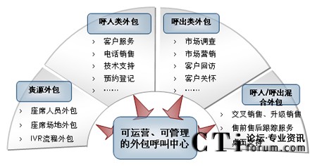 外包呼叫中心由呼叫中心運營商通過專業(yè)的、標(biāo)準(zhǔn)化的服務(wù)流程,以坐席出租、設(shè)備出租、人員或業(yè)務(wù)出租等業(yè)務(wù)模式,為有呼叫中心使用需求的企業(yè)、社會團體提供業(yè)務(wù)來電、市場調(diào)查、客戶關(guān)系管理、市場營銷、電話銷售、技術(shù)支持等呼叫中心功能,從而減少企業(yè)在呼叫中心建設(shè)、管理、維護方面的成本,把更多的精力聚集在企業(yè)的核心業(yè)務(wù)上,提高企業(yè)核心競爭力。
