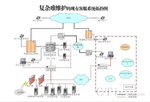 中國鐵通10050客戶服務(wù)中心,自2002年全國各省建設(shè)完畢后,一直為鐵通的用戶提供各種業(yè)務(wù)咨詢、故障處理及投訴申告服務(wù)。隨著鐵通用戶數(shù)量的不斷激增,鐵通目前的10050客服中心系統(tǒng)從技術(shù)架構(gòu)、規(guī)模、功能上均無法滿足市場(chǎng)服務(wù)需求,所用的各種核心設(shè)備也基本停產(chǎn),造成了很大的維護(hù)難題。