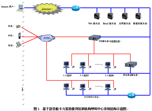 教育培訓(xùn)機(jī)構(gòu)呼叫中心系統(tǒng)是一個(gè)集合電話(huà)語(yǔ)音、計(jì)算機(jī)網(wǎng)絡(luò)、數(shù)據(jù)庫(kù)等技術(shù)的綜合信息服務(wù)平臺(tái),主要由自動(dòng)語(yǔ)音應(yīng)答系統(tǒng)、人工座席和數(shù)據(jù)庫(kù)系統(tǒng)三部分組成。