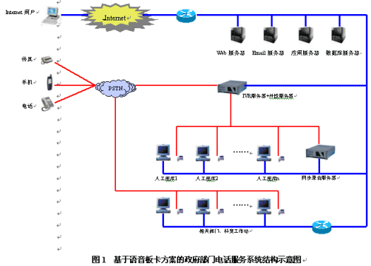 政府部門電話服務系統(tǒng)是一個集合電話語音、計算機網(wǎng)絡、數(shù)據(jù)庫等技術的綜合信息服務平臺,主要由自動語音應答系統(tǒng)、人工座席和數(shù)據(jù)庫系統(tǒng)三部分組成。