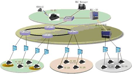 一般來(lái)說(shuō),在省公司同時(shí)參與會(huì)議的人數(shù)較多,考慮配置比較大的系統(tǒng),由某一領(lǐng)導(dǎo)召集一些相關(guān)成員在此開會(huì);在地市公司同時(shí)參與會(huì)議的人數(shù)較少,只是一些主要領(lǐng)導(dǎo)參加會(huì)議,考慮配置比較小的系統(tǒng);同時(shí),為了實(shí)現(xiàn)終端之間管理和傳送音頻、視頻和數(shù)據(jù),需要MCU來(lái)協(xié)調(diào)終端的工作,并與上級(jí)MCU相級(jí)聯(lián),擴(kuò)大會(huì)議的規(guī)模。另外,可以增加一套T.120服務(wù)器,該系統(tǒng)是利用多媒體技術(shù)幫助使用者對(duì)工作中的各種信息進(jìn)行處理,如共享數(shù)據(jù)、共享應(yīng)用程序、實(shí)現(xiàn)文件的雙向傳輸?shù)龋瑥亩鴺?gòu)造出一個(gè)多人共享的工作空間。以及增加一套VOD系統(tǒng),它集視頻采集、點(diǎn)播、廣播于一體,這樣就可以將視頻會(huì)議的內(nèi)容實(shí)時(shí)的錄制到本地,也可將一些培訓(xùn)資料放在視頻點(diǎn)播里,便于對(duì)貴公司員工進(jìn)行培訓(xùn),還能通過(guò)視頻廣播的功能,讓使用PC機(jī)的人員不在會(huì)議室,便可以通過(guò)瀏覽器實(shí)時(shí)的看到和聽到正在召開的會(huì)議。