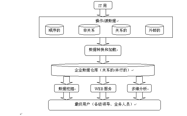 數(shù)據(jù)倉(cāng)庫(kù)是信息技術(shù)領(lǐng)域的新概念,是近幾年來(lái)迅速發(fā)展起來(lái)的一種信息存儲(chǔ)及管理技術(shù)。它存儲(chǔ)各種大量的、決策分析所需要的、歷史的、分散的數(shù)據(jù),經(jīng)過(guò)處理將這些數(shù)據(jù)轉(zhuǎn)換成集中統(tǒng)一、隨時(shí)可用的信息。它能方便地提供隨機(jī)查詢(xún)和各種分析處理,它具有在任何時(shí)間、就任何業(yè)務(wù)、回答任何問(wèn)題的能力;利用數(shù)據(jù)倉(cāng)庫(kù)前端的數(shù)據(jù)挖掘工具和人工智能算法建立各種調(diào)查、分析和預(yù)測(cè)模型。