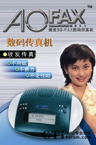 傲發(fā)3G-FAX也是唯一一個擁有全系列電子傳真機(jī)系列產(chǎn)品的品牌,產(chǎn)品包括免費(fèi)使用的傲發(fā)3G-FAX傳真軟件A10、單電腦使用的數(shù)碼傳真機(jī)A20、4用戶環(huán)境的網(wǎng)絡(luò)傳真機(jī)A30、軍警使用的軍用傳真系統(tǒng)A50、政府公安部門使用的多路傳真群發(fā)系統(tǒng)A80X-GA、不限用戶數(shù)目的網(wǎng)絡(luò)傳真機(jī)A60、1至2線的大眾型傳真服務(wù)器A801和A802,2至256傳真線路多種規(guī)格的專業(yè)型傳真服務(wù)器A80X、跨區(qū)域大型公司使用的集團(tuán)傳真系統(tǒng)和行業(yè)解決方案等。