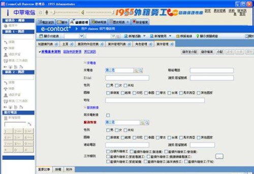 與其說(shuō)是外籍勞工保護(hù)專案,其實(shí)也是雇主申訴專線,本專案須整合中華電信代理的COSMO軟體電話功能,及導(dǎo)入服務(wù)及客服模組,當(dāng)電話來(lái)電時(shí),客服員案下軟體電話接聽(tīng)時(shí),同時(shí)利用來(lái)電電話搜尋并帶入當(dāng)通來(lái)電者資料及歷史申訴案件至畫面上,如果需要建立申訴案件,也可以使用服務(wù)請(qǐng)求將申訴案件儲(chǔ)存于系統(tǒng)中,或是需要咨詢答覆時(shí),也只要將關(guān)鍵字輸入至知識(shí)庫(kù)的查詢方案中,在短時(shí)間找到答案馬上做回覆,讓作業(yè)更有效率。本專案角色分為接線服務(wù)員、業(yè)務(wù)督導(dǎo)、行政管理及全省25個(gè)縣市政府機(jī)關(guān)人員。接線服務(wù)員是第一線的電話服務(wù)窗口,接電話同時(shí)須視電話內(nèi)容新增服務(wù)請(qǐng)求,并做判斷是否可以即時(shí)線上結(jié)案,如果不行結(jié)案,則可使用該服務(wù)請(qǐng)求(派案單)下新增任務(wù),將任務(wù)分配至全省25個(gè)縣市政府機(jī)關(guān)人員,各縣市人員收到任務(wù)(回覆單),也可以活動(dòng)(紀(jì)錄單)線上回覆派案處理狀況,并做結(jié)案,系統(tǒng)可依照設(shè)定的審核流程請(qǐng)求同意結(jié)案。