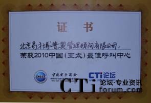 CTI論壇(ctiforum)10月14日消息(記者 潘婷婷):2010年9月28日,由中國(guó)電子商會(huì)呼叫中心與客戶關(guān)系管理專業(yè)委員會(huì)(CNCCA)主辦,國(guó)家工業(yè)和信息化部支持,CTI論壇承辦的2010中國(guó)呼叫中心產(chǎn)業(yè)峰會(huì)暨中國(guó)(亞太)最佳呼叫中心頒獎(jiǎng)典禮在北京成功召開。北京易才博普奧管理顧問(wèn)有限公司通過(guò)行業(yè)推薦、評(píng)審專家小組的電話暗訪、入戶調(diào)研等多個(gè)環(huán)節(jié)的嚴(yán)格審核,憑借在人力資源外包服務(wù)領(lǐng)域的卓越表現(xiàn)從眾多企業(yè)中脫穎而出,并最終摘取“2010中國(guó)(亞太)最佳呼叫中心”桂冠。
