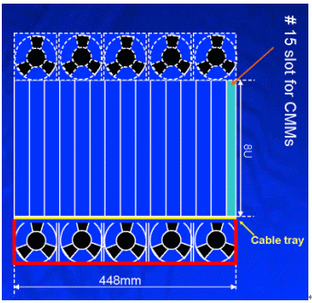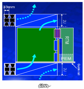 另外在機架內(nèi)的放置空間上,42U的標準機架里可以放3臺12~14U機箱,若將機箱降至10U則可以放置4臺,這樣可以增加整體空間的利用率,所以有了10U機箱的設計需求。在各種不同高度的機箱設計中,風扇散熱系統(tǒng)的放置位置、方式與總散熱效能能夠達到200*14=2800W,將會是ATCA機箱設計所要考慮的最重要因素之一,尤其是在10U的機箱設計上。