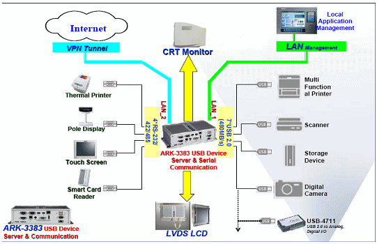 ARK-3383從設(shè)計(jì)初就定義為企業(yè)類USB設(shè)備的接入”門戶”, ARK-3383可使使用者立即連接各種各樣的USB外圍設(shè)備或方便共有的用戶存取,數(shù)據(jù)傳輸速度可達(dá)480
