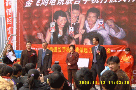 11月12日上午,賽迪呼叫中心與京城著名手機(jī)連鎖賣場(chǎng)--金飛鴻電訊聯(lián)手,在金飛鴻在首體店舉行"95121315手機(jī)防偽查詢熱線指定合作單位"揭牌儀式,在國(guó)家信息產(chǎn)業(yè)部的認(rèn)證下,成為京城首個(gè)"手機(jī)防偽查詢熱線指定合作單位",迎來了京城手機(jī)賣場(chǎng)打假維權(quán)的規(guī)范化時(shí)代。