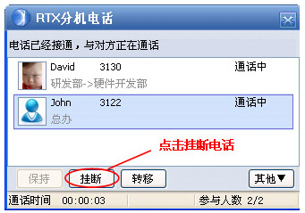 呼叫保持、轉移、掛斷: