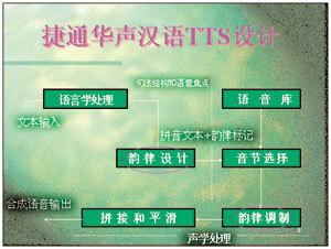 捷通為了加強(qiáng)在語(yǔ)音技術(shù)方面的研發(fā)實(shí)力,于去年聯(lián)合著名語(yǔ)音技術(shù)專家呂士楠先生,共同投資創(chuàng)辦了專門(mén)從事漢語(yǔ)語(yǔ)音技術(shù)研究和應(yīng)用的捷通華聲語(yǔ)音公司。由呂先生親自主持捷通華聲語(yǔ)音研發(fā)中心,并在TTS技術(shù)上不斷創(chuàng)新。去年2月,捷通的TTS實(shí)現(xiàn)了中英文混讀的功能;去年5月,實(shí)現(xiàn)語(yǔ)音合成技術(shù)在嵌入式操作系統(tǒng)中的移植;今年7月,推出語(yǔ)音質(zhì)量自然的語(yǔ)音合成系統(tǒng)。