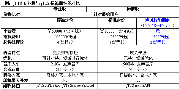 1)為"jTTS標(biāo)準(zhǔn)版"提供進(jìn)一步的優(yōu)惠價(jià)格。(詳情請聯(lián)系捷通市場營銷中心)