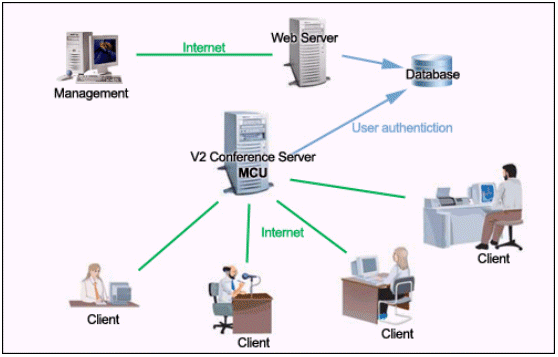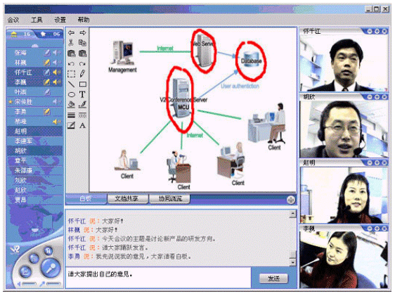 V2 Conference可以利用普通的PC機、標準的視頻攝像頭、耳機和麥克風,通過Internet或者是局域網(wǎng)進行會議。與傳統(tǒng)的需要專用的服務器和硬件支持的視頻會議相比,企業(yè)無需投入高昂的成本,就可以實現(xiàn)高質量的遠程會議。同時,V2 Conference還提供了遠程會議管理的功能。
