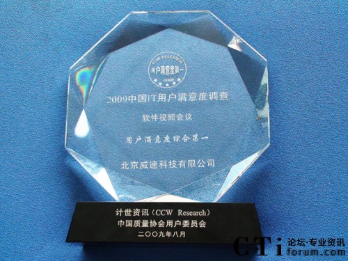 CTI論壇(ctiforum)09月03日消息: 在27日剛剛結(jié)束的“2009中國IT用戶滿意度年會(huì)”上,威速科技喜獲“2009軟件視頻會(huì)議IT用戶滿意度綜合第一”大獎(jiǎng)。憑借在產(chǎn)品與服務(wù)方面多年的優(yōu)異表現(xiàn),成立10周年的威速科技連續(xù)9年獲此殊榮,這也充分彰顯了威速科技已成為視頻會(huì)議軟件市場上公認(rèn)的滿意品牌。