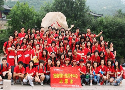瞧瞧我們這架勢,時刻都不忘給自己是來自招商銀行的志愿者。在長城上擺CMB(China Merchants Bank),真是太有創(chuàng)意啦!