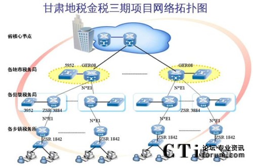 甘肅省地方稅務(wù)局省地稅系統(tǒng)共有101個(gè)行政機(jī)關(guān)(其中省級機(jī)關(guān)1個(gè),市州級機(jī) 關(guān)14個(gè),縣市區(qū)級機(jī)關(guān)86個(gè)),基層直屬單位340個(gè)(其中征收分局170個(gè),管理分局170個(gè)),派出單位(稅務(wù)所)4285個(gè)。計(jì)算機(jī)網(wǎng)絡(luò)建設(shè)是稅務(wù)系統(tǒng)信息化工作開展的基礎(chǔ),按照國稅總局金稅三期網(wǎng)絡(luò)的建設(shè)規(guī)劃,需要建設(shè)一個(gè)開放的、可同時(shí)滿足各種業(yè)務(wù)、數(shù)據(jù)、語音、視頻及圖象應(yīng)用的覆蓋省、地市、區(qū)縣和鄉(xiāng)鎮(zhèn)稅務(wù)所等各級國稅稅務(wù)機(jī)關(guān)的綜合性通信平臺,為現(xiàn)有的應(yīng)用及將來可能的應(yīng)用提供高效可靠的支撐。