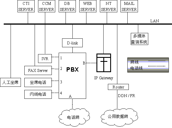 客戶服務中心的關(guān)鍵技術(shù)是CTI(將計算機、電信技術(shù)通過某種硬件或軟件集成在一起的技術(shù)),CTI的發(fā)展方向為計算機技術(shù)、電信技術(shù)和多媒體技術(shù)的充分結(jié)合。當然除了計算機、通信、多媒體技術(shù)外,系統(tǒng)不可避免地要與數(shù)據(jù)庫、數(shù)據(jù)倉庫等技術(shù)集成。