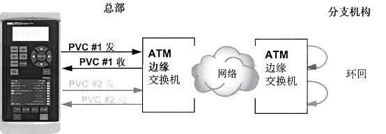永久虛電路(PVC)上的端到端測試能夠通過兩種方法來完成。第一,將測試儀接在PVC通道的兩端進行兩次測試,兩臺測試儀分別作為流量的發(fā)送和接收端。這一方法的好處是可以對PVC通道的兩個方向分別進行測試。