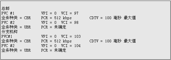 如果3個PVCs都是恒定比特率類型的業(yè)務(wù),則PCR的總和不能超過1.024Mbps。如果3個PVCs都是可變比特率的應(yīng)用,SCR的總和不能超過1.024Mbps,PCR的總和不能超過1.35Mbps。如果端用戶要求更大的帶寬,則需要DS3接口,部分DS3接口,ATM反復用器(IMA)或OC3物理接口。