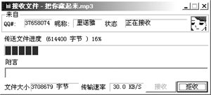 IM軟件能點(diǎn)對點(diǎn)的傳輸文件,有時(shí)候利用此功能要比使用E-mail還方便許多,當(dāng)然此項(xiàng)功能必須在對方在線時(shí)才能使用。在QQ的好友頭像上點(diǎn)擊右鍵,選擇“傳送文件”,選定要傳送的文件,點(diǎn)擊發(fā)送,等待對方接受請求。此外,ICQ的文件傳送功能還支持類似斷點(diǎn)續(xù)傳的功能,不必?fù)?dān)心文件傳送過程中發(fā)生突然中斷的情況。