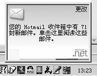 Messenger來說它的郵件功能就更強(qiáng)大了,使用MSN Messenger你必須有一個(gè)郵件賬號,每次當(dāng)您的MSN Messenger登錄成功時(shí),在右下角自動(dòng)彈出一個(gè)窗口,里面寫有該E-mail賬戶內(nèi)的信件狀況,在使用過程中如果您的郵箱中有了新郵件,馬上會冒出一個(gè)提示窗。
